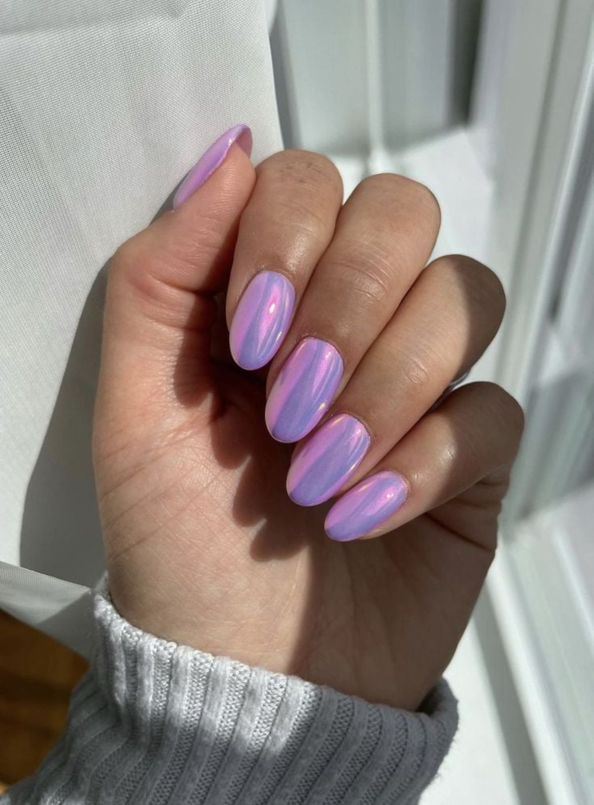 “O lilás holográfico é versátil: combina com alfaiataria minimalista ou com looks de festival”, comenta a nail artist espanhola Rosa Hold.