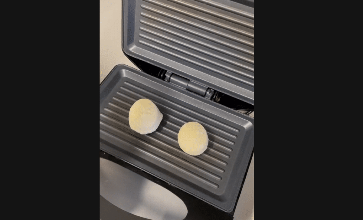 - Para quem prefere bem tostadinho, abra a sanduicheira, vire o pão de queijo e asse mais 40 segundos do outro lado.